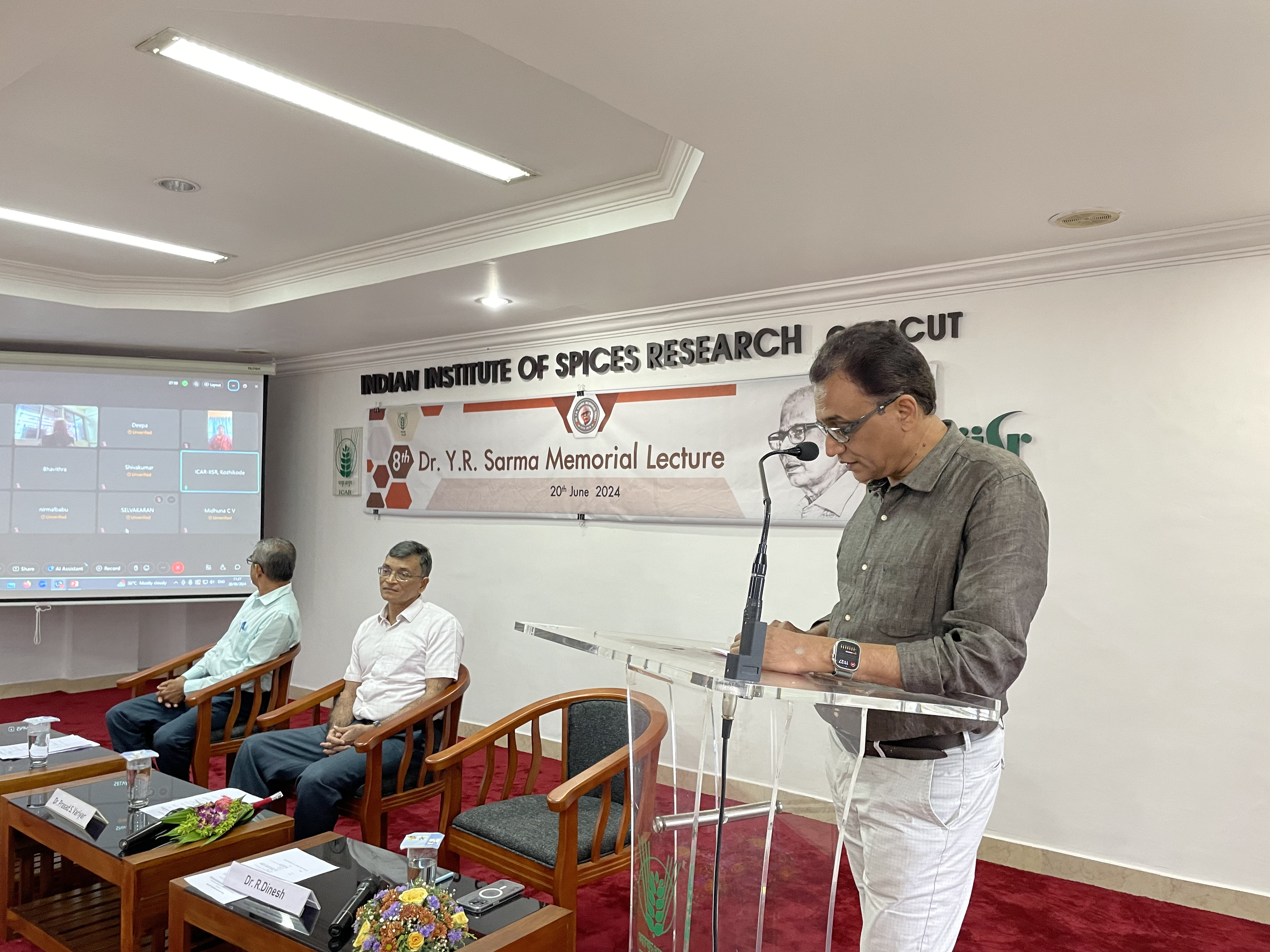 Dr. Prasad S. Variyar, former Head of the Food and Fermentation Applications Section (FFACS) at the Bhabha Atomic Research Centre in Mumbai delivered the eighth Dr. Y.R. Sarma Memorial Lecture on "Radiation Processing for Enhancing Post-Harvest Quality of Spices" at the ICAR-Indian Institute of Spices Research (ICAR-IISR). The event, held in association with the Dr. Y.R. Sarma Memorial Trust at the IISR headquarters, honored the memory of Dr. Y.R. Sarma, former director of ICAR-IISR and a prominent scientist who significantly contributed to spice research in India and internationally. Dr. R. Dinesh, Director of ICAR-IISR, presided over the program.