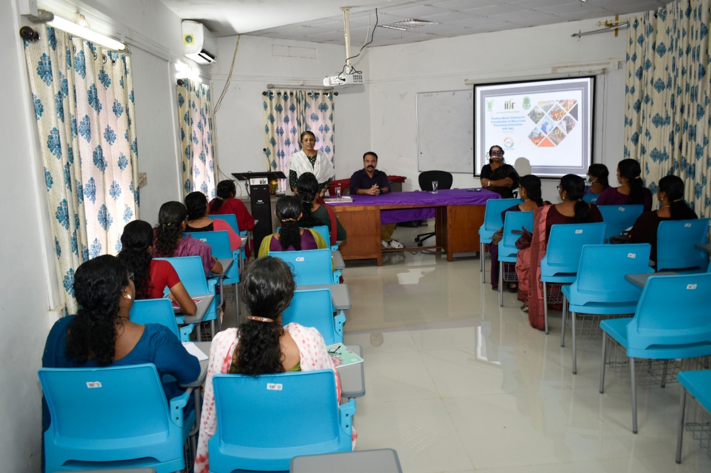 Second schedule of one day capacity building programme for women entrepreneurs was organized at ICAR-IISR on 5.12.2023 as part of Pradhhan Mantri Formalization of Micro Food Enterprises (PMFME) scheme funded by Ministry of Food Processing Industries, GoI. The programme was inaugurated by Dr. C K Thankamani, Principal Scientist and Head i/c, Division of Crop Production and Post-harvest Technology. Twenty-six women entrepreneurs from various blocks of Kozhikode district participated in the programme. Dr. E Jayashree, Principal Scientist, ICAR – IISR and Dr. K P Sudheer, Professor, KAU delivered technical sessions during the training programme. Technical sessions on processing, value addition and quality management in spices were covered in the skill development programme. Hands on training was imparted to the women entrepreneurs on value added products of ginger. The programme was coordinated in collaboration with the agri-business incubator unit of Kerala Agricultural University.