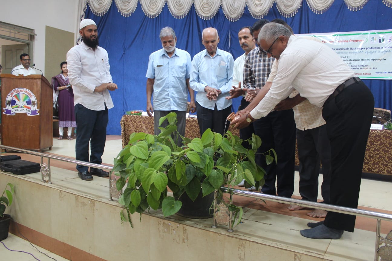 ICAR- Indian Institute of Spices Research Regional Station, Appangala organized, Directorate of Arecanut and Spices Development, Calicut sponsored district level farmers training programme on “Scientific and technological approaches for sustainable black pepper production in Malnad region” on 07.02.2023 at TMS hall, Sirsi. This training was conducted in association with Horticultural Research and Extension Centre (UHS), Sirsi and Taluka Agricultural Produce Co-operative Marketing Society Ltd. (TMS), Sirsi.