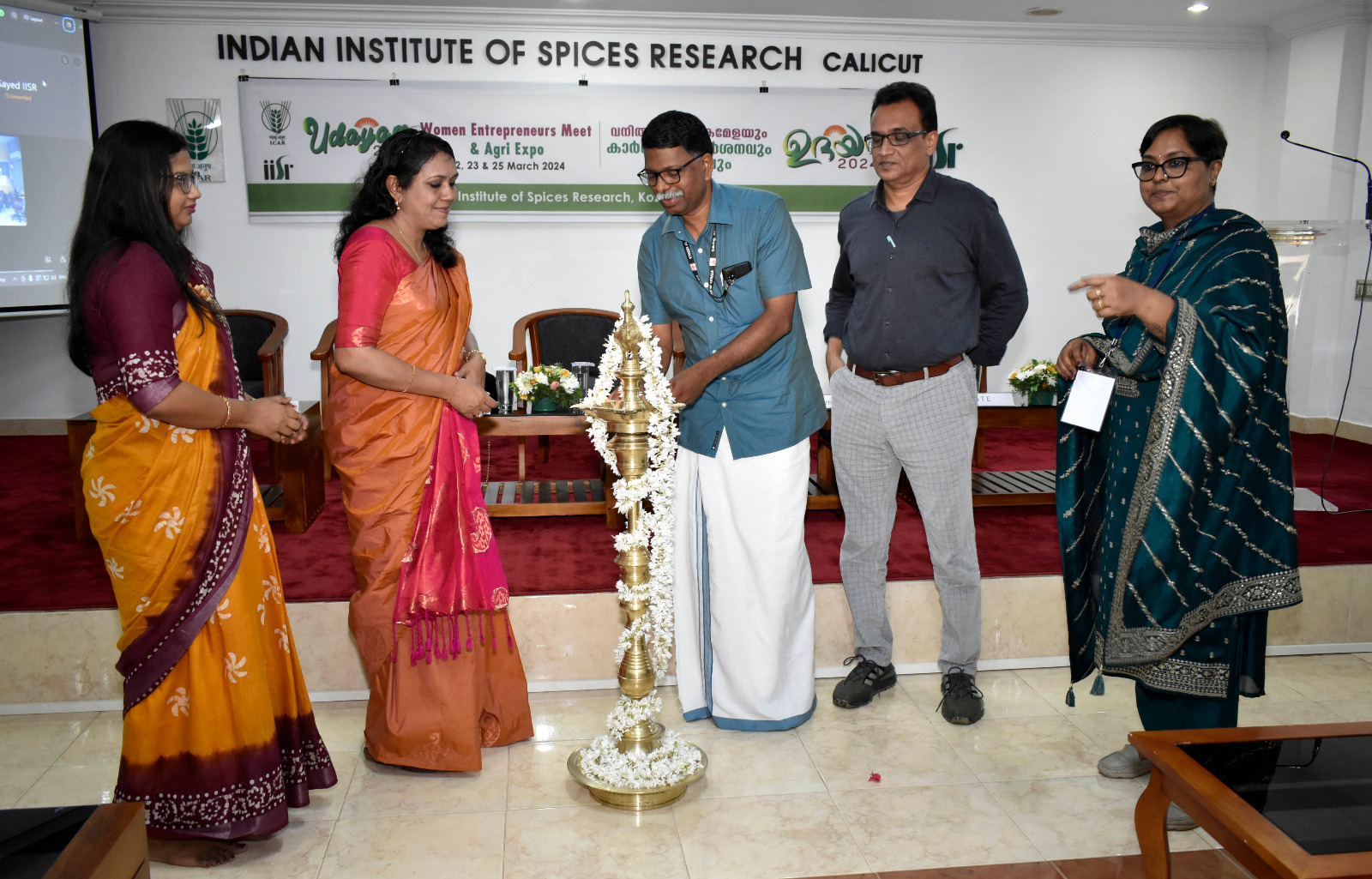 The program organized by Institute Technology Management – Agri Business Incubation Unit (ITM-ABI) of ICAR-IISR was inaugurated by Dr. Neeru Bhushan, Assistant Director General, IP&TM, ICAR New Delhi. Ms. Sindhu R, District Project Coordinator, Kudumbashree Mission, Kozhikode, served as the Chief Guest for the inauguration of the exhibition stalls. Dr. Dinesh R, Director, IISR, presided over the inaugural session alongside Mr. Ananthakumar T K, Dr. T.E. Sheeja, and Dr. Maneesha S R.